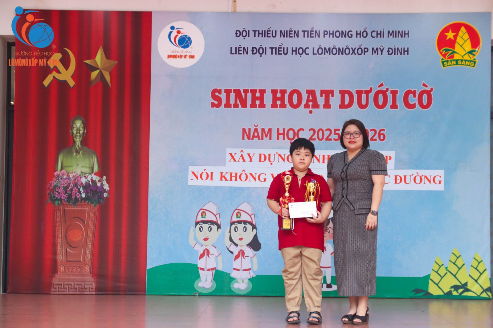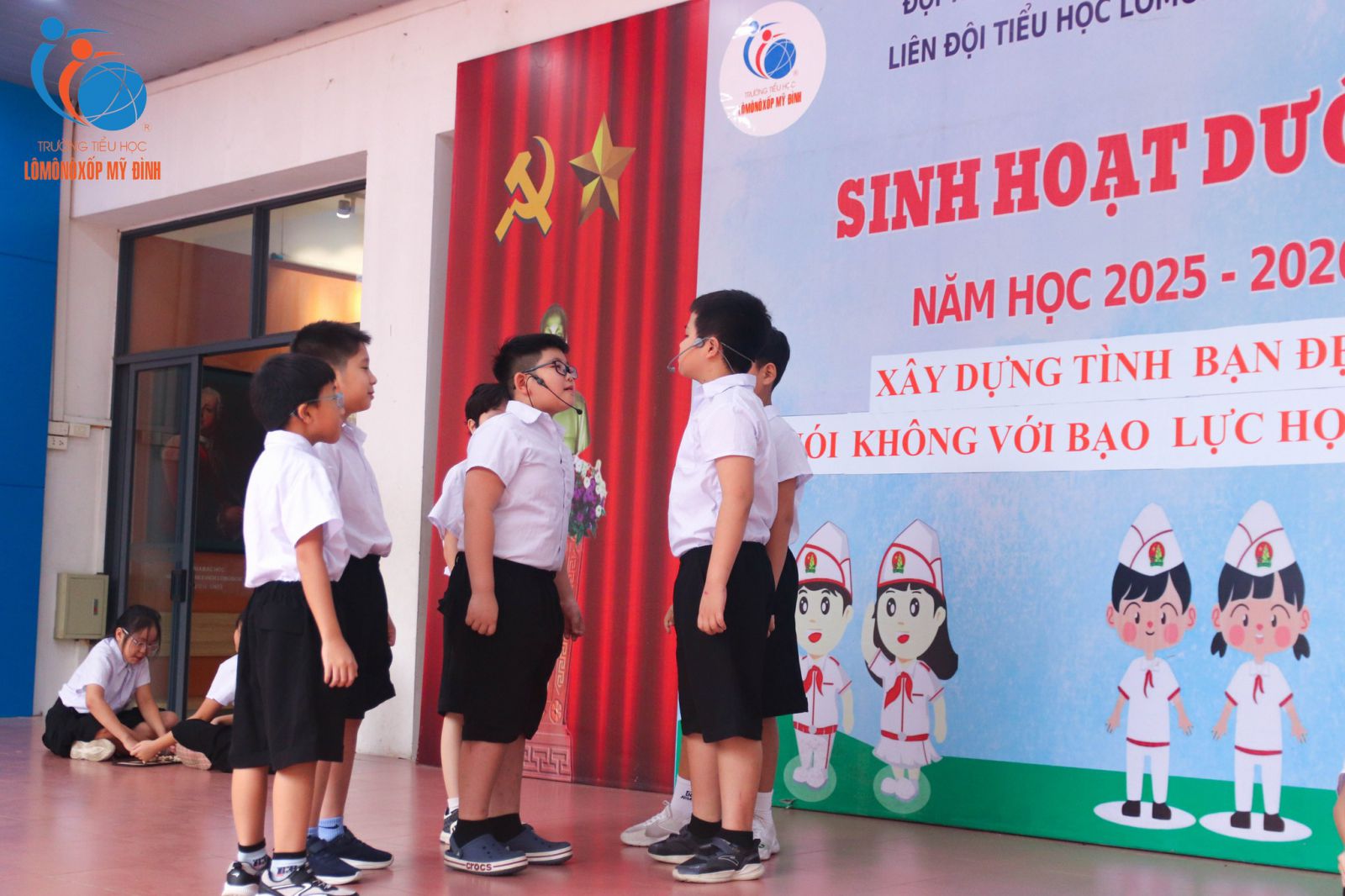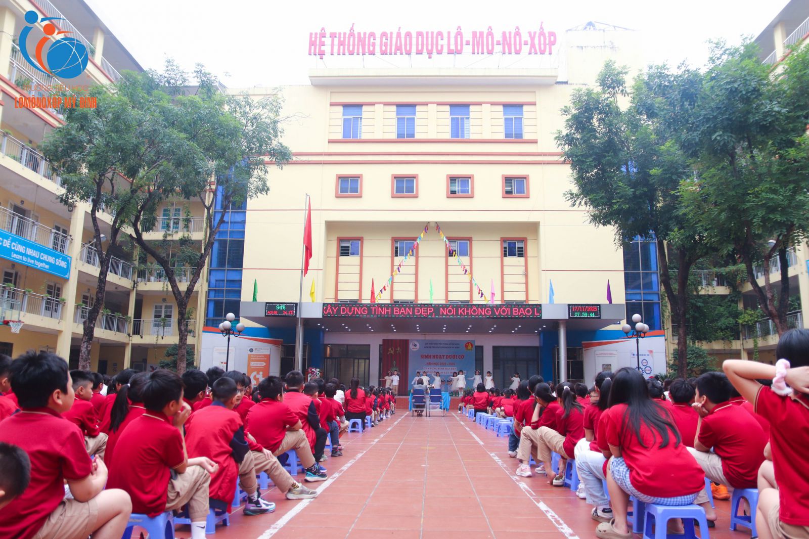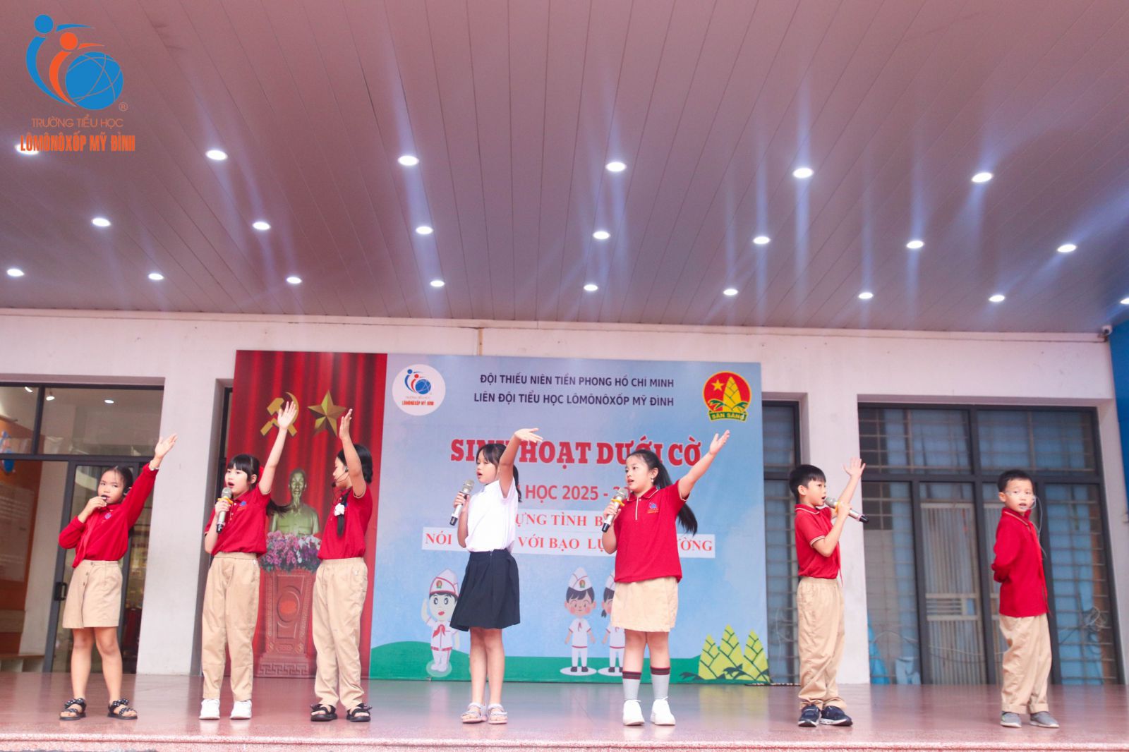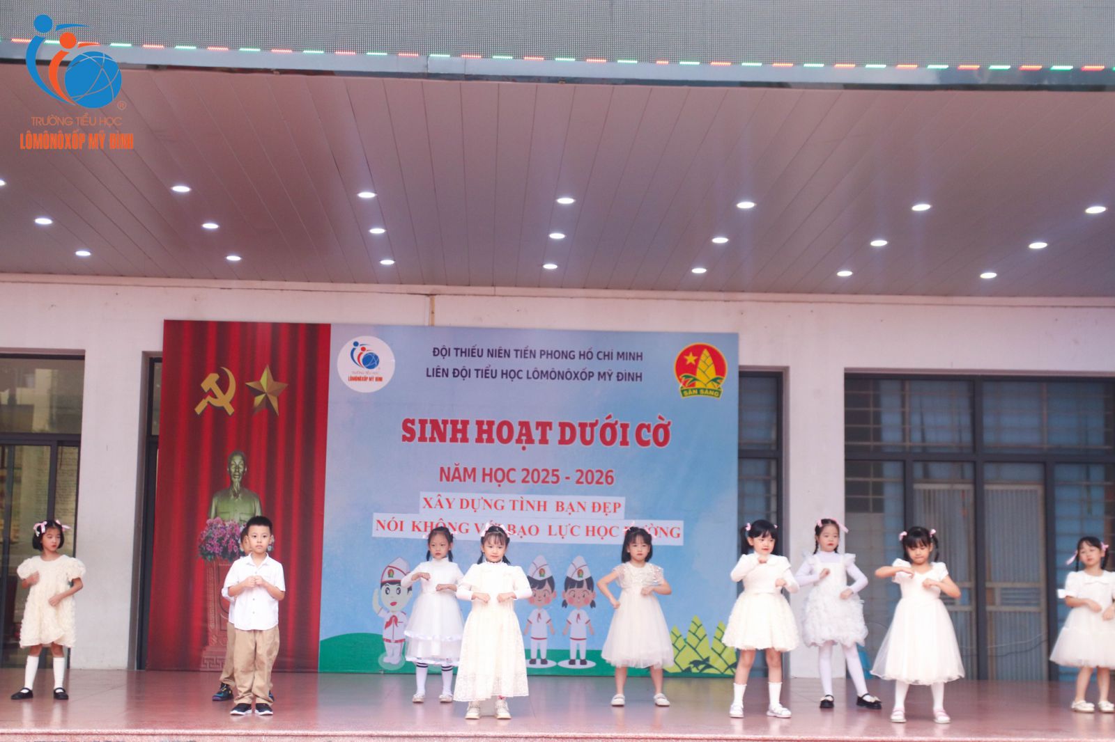 Mỗi buổi chào cờ đầu tuần luôn như một trang sách mới, mở ra những câu chuyện đẹp và những bài học yêu thương để học sinh thêm vững vàng trên hành trình trưởng thành. Sáng ngày 17/11/2025, trong không khí trang nghiêm mà ấm áp, chủ điểm “Xây dựng tình bạn đẹp – Nói không với bạo lực học đường” đã lan tỏa mạnh mẽ thông điệp về lòng nhân ái, sự bao dung và tinh thần tôn trọng bạn bè.