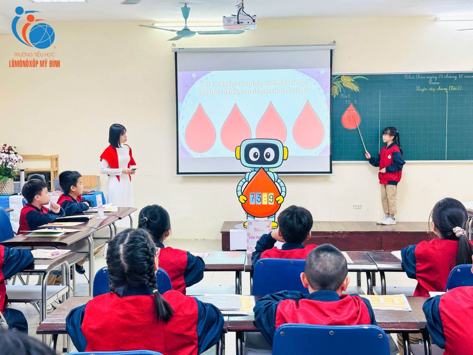 Điểm nhấn thú vị của tiết học chính là robot STEAM – sản phẩm sáng tạo có khả năng đưa ra các phép tính cộng, trừ, nhân, chia trong phạm vi 100. Nhờ robot đồng hành, học sinh được kích thích hứng thú học tập, rèn tư duy logic và yêu thích công nghệ.
